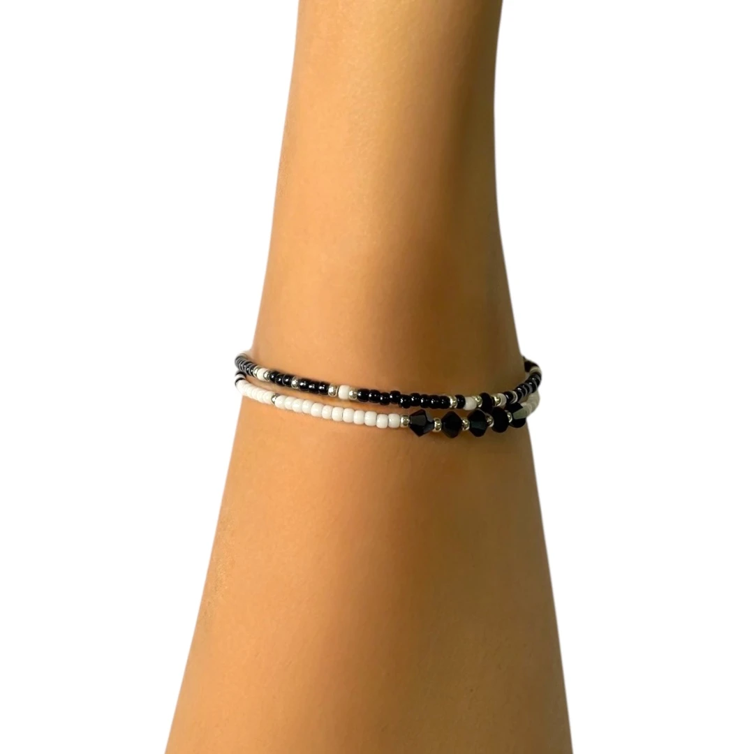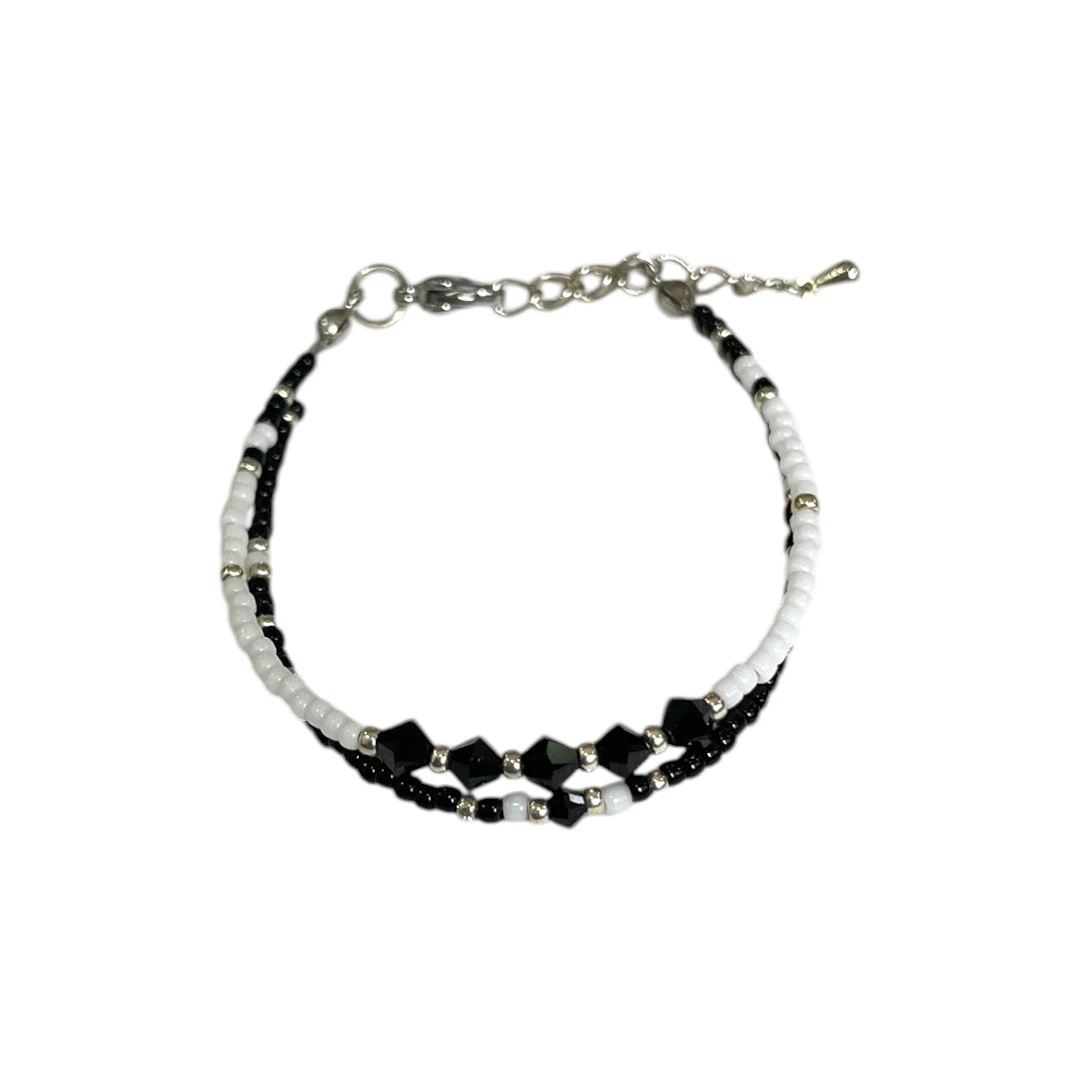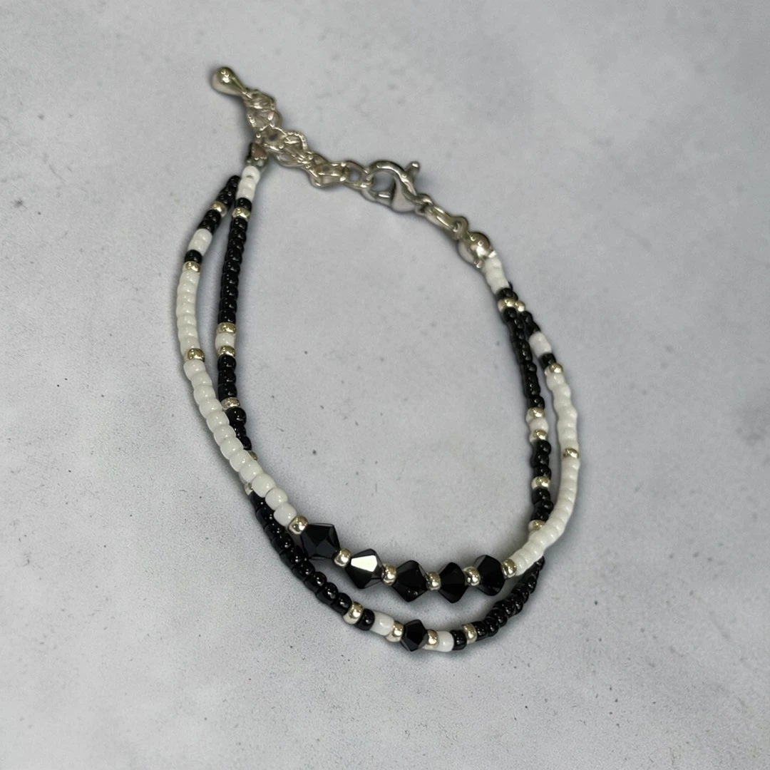 An adjustable bracelet handmade with Japanese seed beads and Swarovski crystals. Comes as a set with both chains connected together for easy wearing.