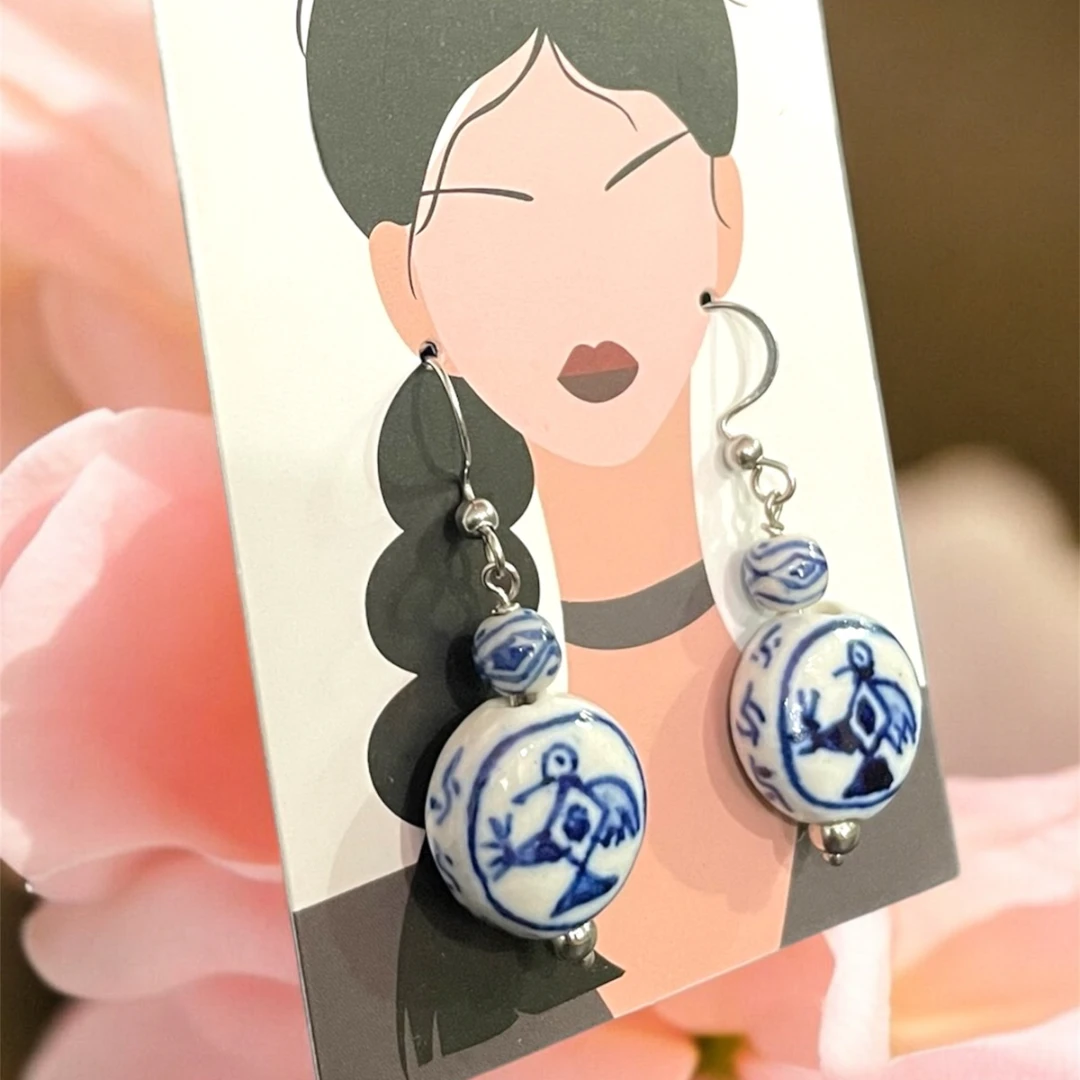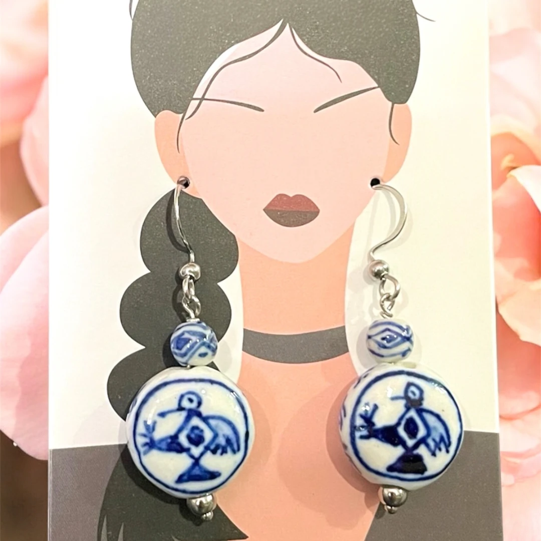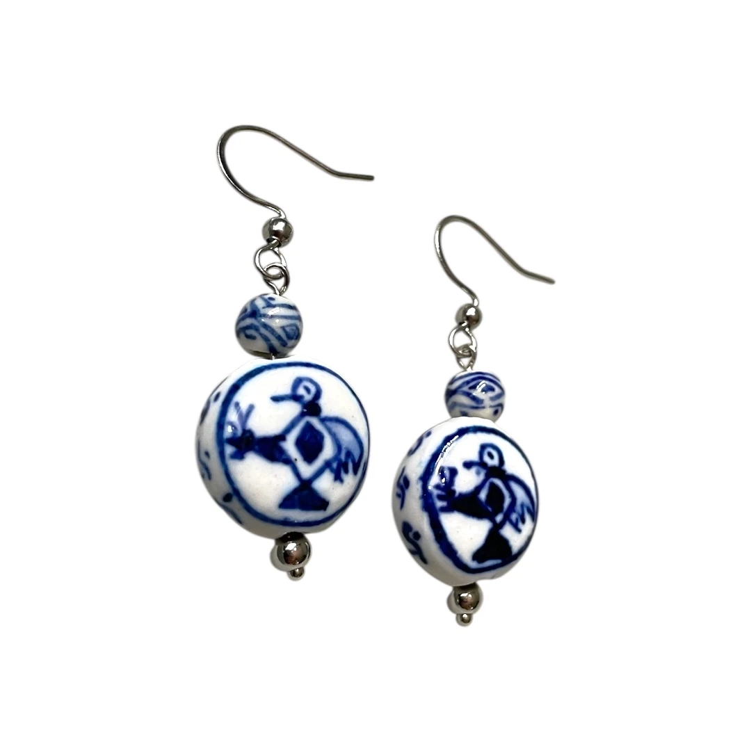 Porcelain Bead Bird Earrings