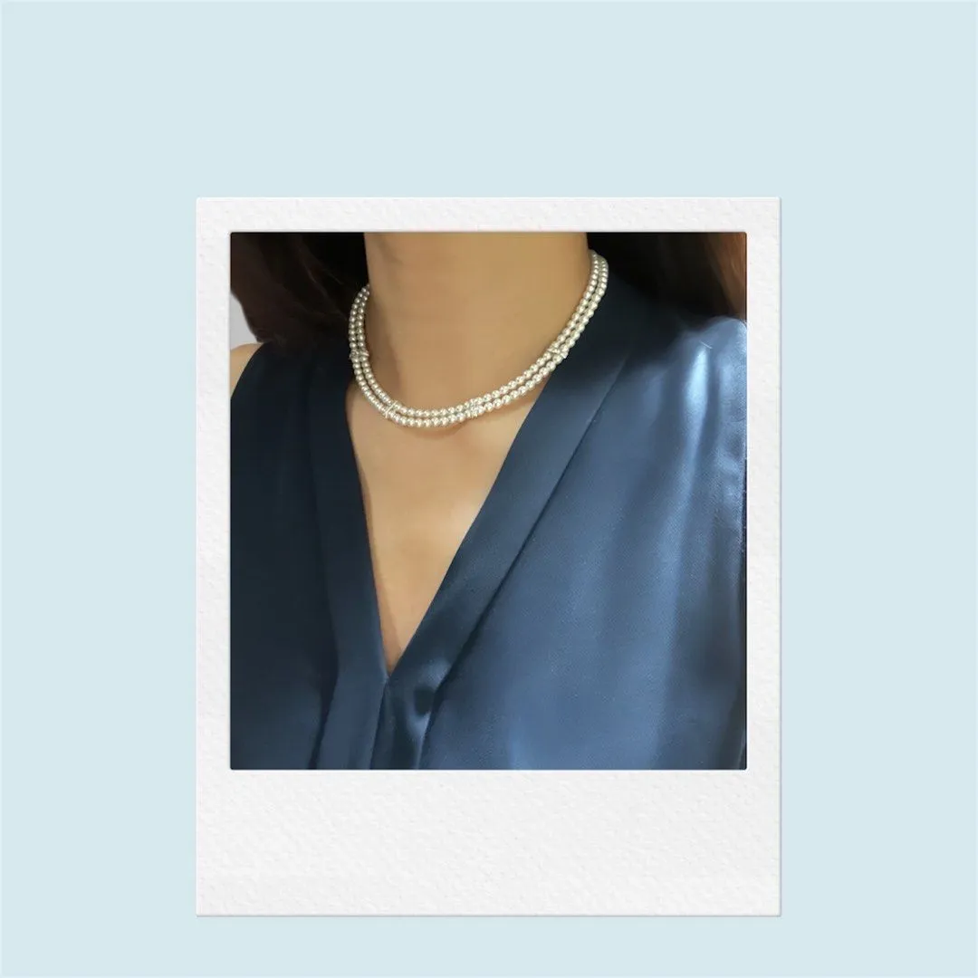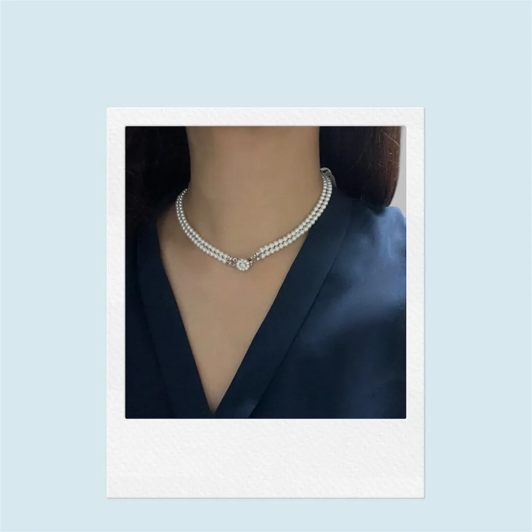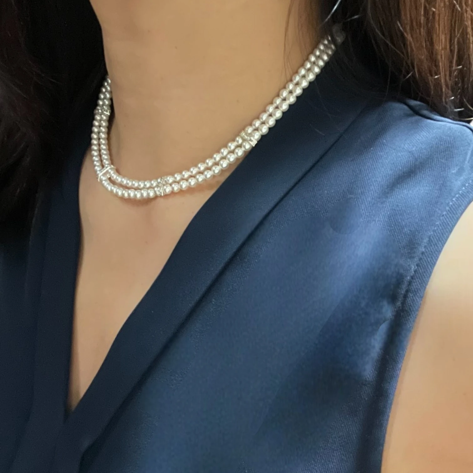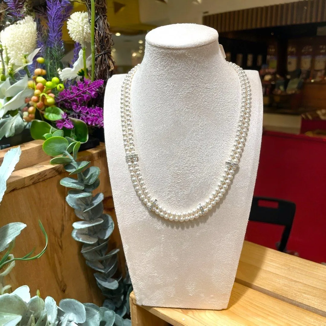 Elevate any outfit with this double-strand Swarovski Pearl necklace, designed to be reversible with a floral clasp flaunted in front or hidden behind.